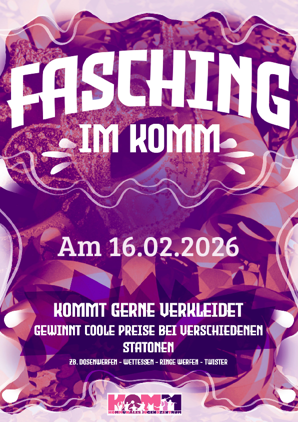 Helau ihr Lieben, seid ihr schon in Faschingsstimmung? Wir sind es, bei uns gibt es wieder viele Spiele, gute Musik und Süßes zu knabbern. Kommt verkleidet und staubt Preise bei den Minispielen ab!