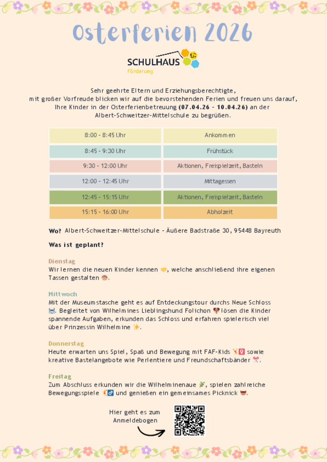 Ihre Kinder in der Osterferienbetreuung (07.04.26 - 10.04.26) an der